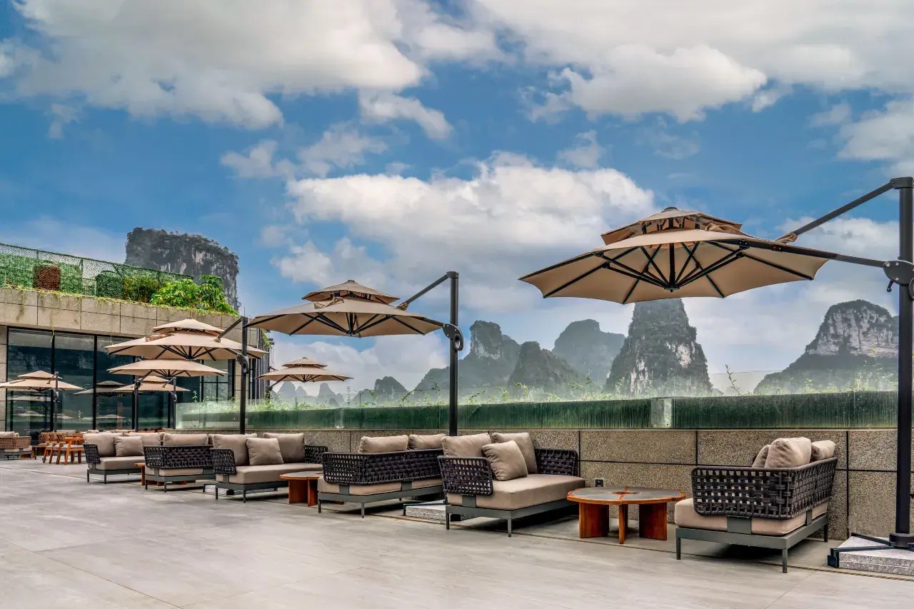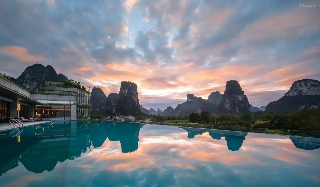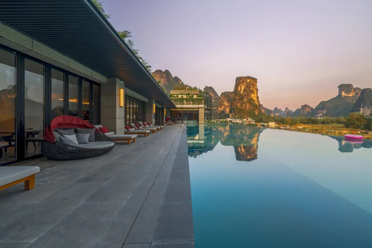 隱身於明仕田園山水之中,以「久住、靜住、慢生活」為核心理念,建築與自然地貌和諧共生。園區視野開闊,推窗即見喀斯特峰林、田園水色與晨霧薄嵐。客房設計質樸而講究,重視空間留白與自然採光,讓旅人遠離城市喧囂,在山水環抱中,回歸真正放鬆而有溫度的高端度假體驗。