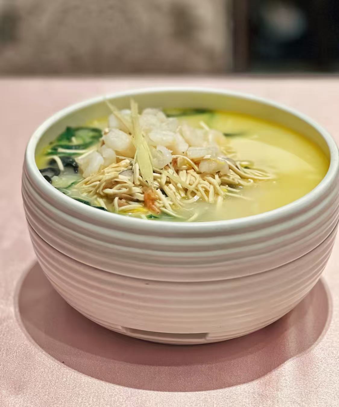 以「新派江南官府菜」聞名,融合淮揚、蘇浙精華,並以現代高端料理手法重新詮釋。選材嚴謹、擺盤精緻,既保留傳統風味層次,又展現國際級飯店的細膩服務與格局,是政商名流與高端饕客推崇的頂級江南餐飲殿堂。