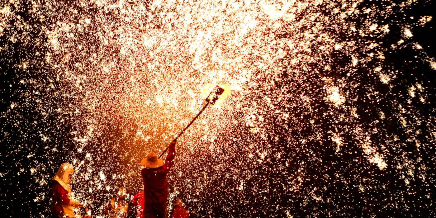 婺女洲夜秀|非遺打鐵花與光影藝術