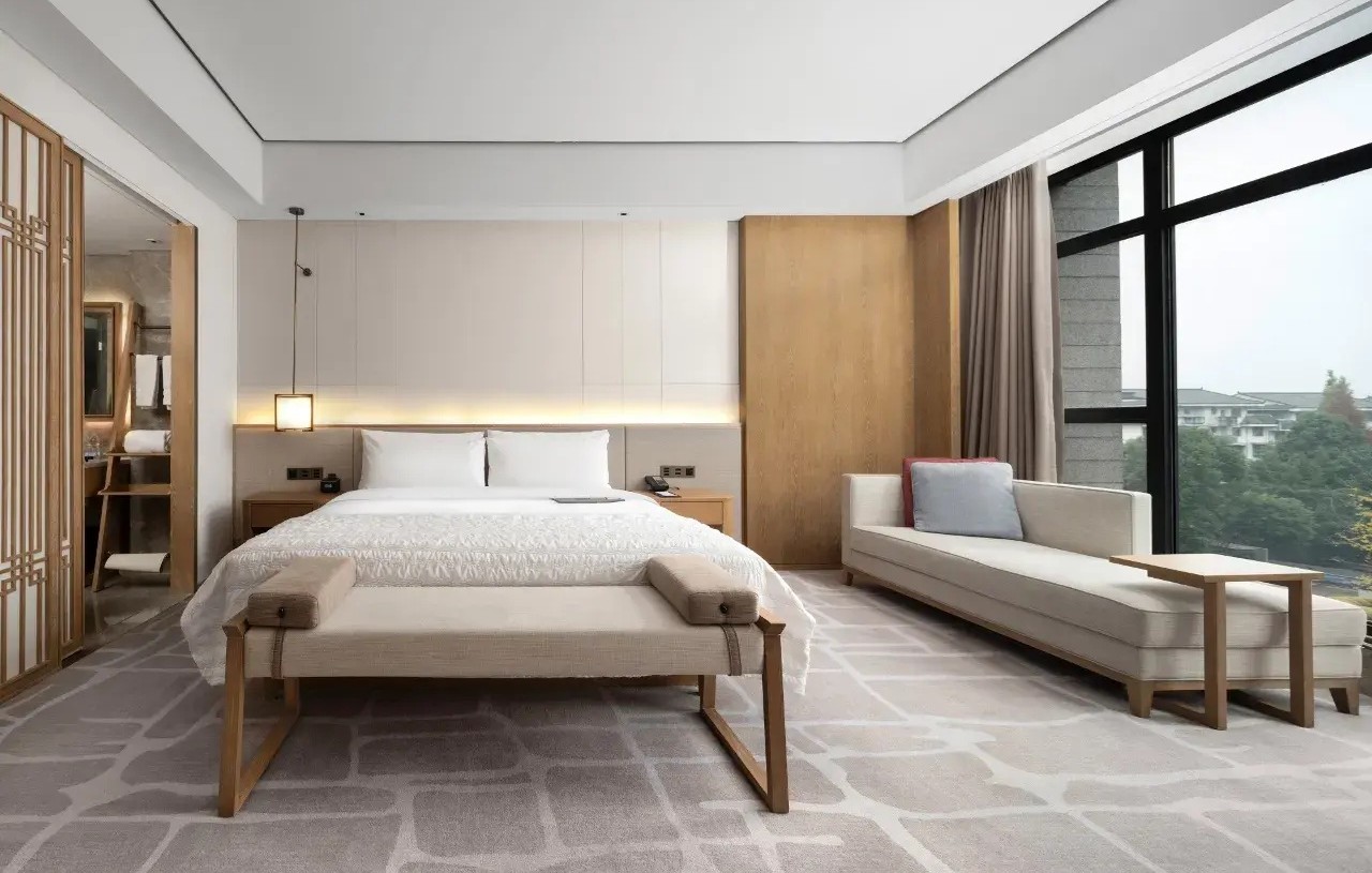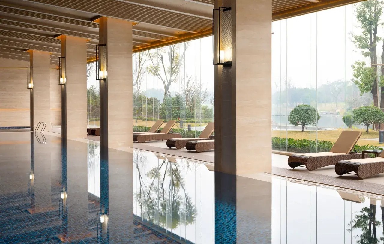 坐落於峨眉山腳,將山林景觀與現代度假奢華結合。酒店設計以自然材質與簡潔線條打造雅致空間,每間客房都能俯瞰山谷或溪流景觀。餐飲精緻講究,康養設施完善,並結合峨眉山文化與靜心體驗,讓旅人在山林之中享受尊貴、從容的度假生活。