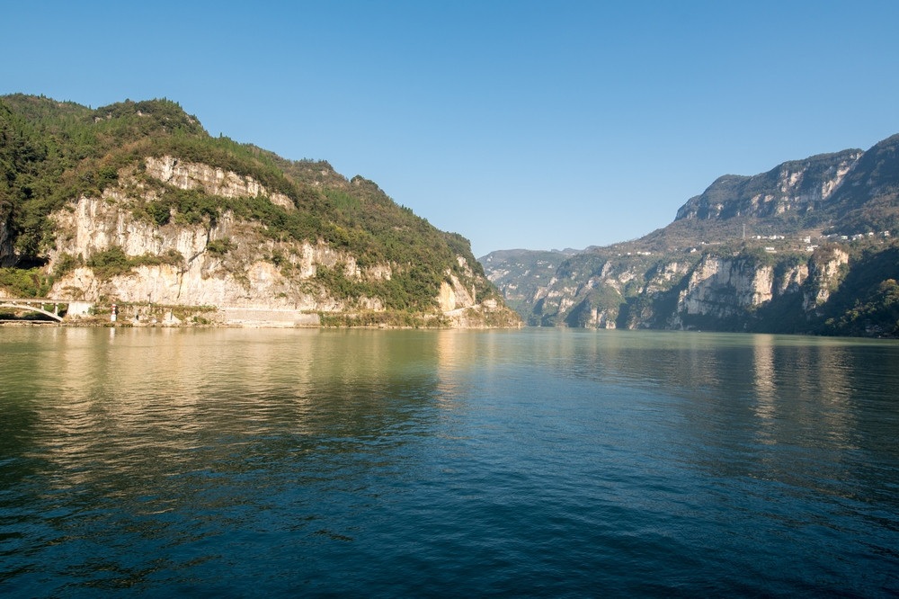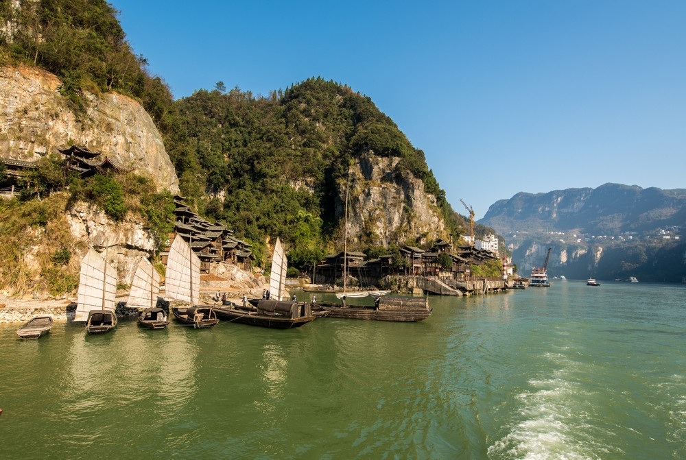 長江三峽中最長的一段,以險峻著稱。峽谷內礁石密布、江勢湍急,兩岸峭壁陡立,充分展現長江在群山夾峙間奔流不息的力量感。此段自古為航運與兵家必爭之地,沿岸仍可見歷史遺跡與古道遺址,讓人感受昔日舟行險境與人類智慧的交鋒。今日行舟於此,在安全舒適的航程中,靜靜欣賞昔日「三峽天險」的雄渾氣勢,別具歷史厚度。