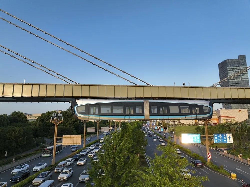 中國首條懸掛式單軌系統,代表中國城市交通邁向「立體化、低碳化、景觀化」的新世代典範。列車行駛於高空軌道之上,車廂採大面積景觀玻璃設計,乘客宛如漂浮於城市綠軸之中,視野開闊、動線流暢。沿線串聯光谷中央生態走廊、湖泊水系、科技園區與現代建築群,展現武漢作為「中國光谷」的城市定位。這不僅是一段交通體驗,更是一場結合城市規劃、科技創新與未來生活想像的沉浸式旅程,是現代中國城市進化最具象徵性的風景線之一。